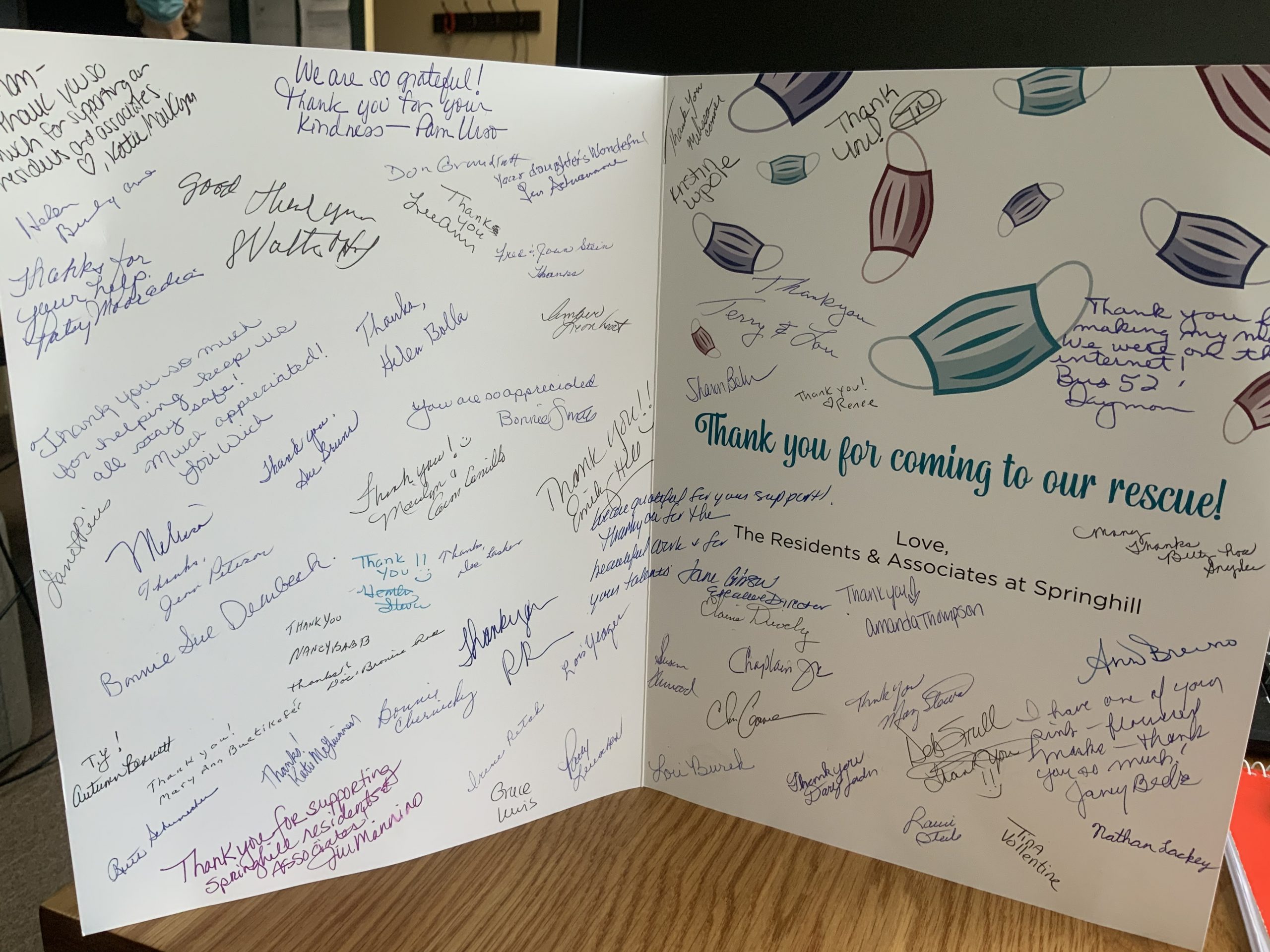 Check out this awesome ‘Thank You’ card from the residents & associates at Springhill Senior Living Community.